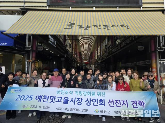 [ 신경북일보 ] 예천군은 예천맛고을시장 상인회(회장 양종례)에서 상인 조직의 경쟁력 제고와 시장 활성화 방안 모색을 위해 9일 부산 초량이음자율상권으로 선진지 견학을 성공적으로 마쳤다고 밝혔다.