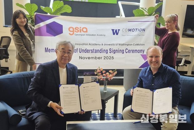 [ 신경북일보 ] (재)경산이노베이션아카데미는 미국 시애틀에 위치한 워싱턴대학교(University of Washington)의 혁신·창업 허브 기관 CoMotion(코모션)과 소프트웨어 인재 양성 및 글로벌 혁신 생태계 조성을 위한 업무협약(MOU)을 10일 체결했다고 밝혔다.