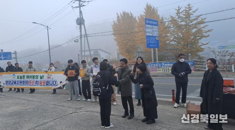 [ 신경북일보 ] 경상북도영양교육지원청은 2025년 11월 13일 오전 7시 10분부터 영양여자중·고등학교 정문에서 2026학년도 대학수학능력시험에 응시하는 수험생을 대상으로 수험생 응원 행사를 진행했다.