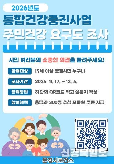 참여 방법은 문경시 홈페이지에 게시된 QR코드를 통해 온라인으로 참여할 수 있으며, 응답자 중 300명을 추첨해 모바일 상품권을 지급할 예정이다.