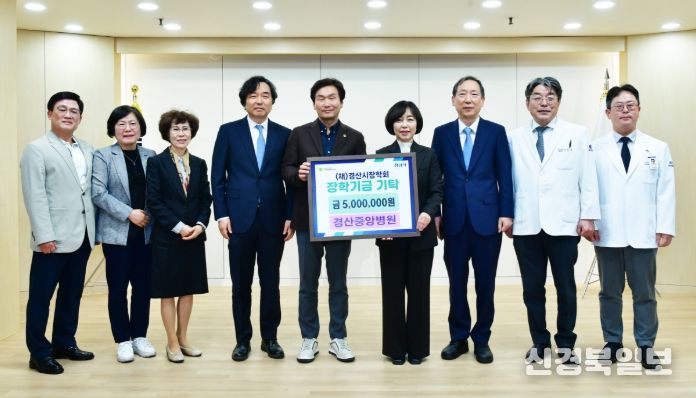 [ 신경북일보 ] (재)경산시장학회(이사장 조현일)는 14일 의료법인 근원의료재단 경산중앙병원(이사장 정민혜)에서 지역인재 육성을 위한 장학금 500만 원을 기탁했다고 밝혔다.