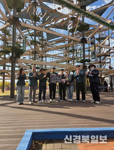 [ 신경북일보 ] 청도우리정신문화재단(대표이사 기화서)은 지난 16일 청도신화랑풍류마을 스카이트레일 현장에서 재단 협약기관인 종합여행플랫폼 ㈜디엠씨트립스의 후원으로 이루어진 ‘4만 번째 입장객 감사 이벤트’를 진행했다.