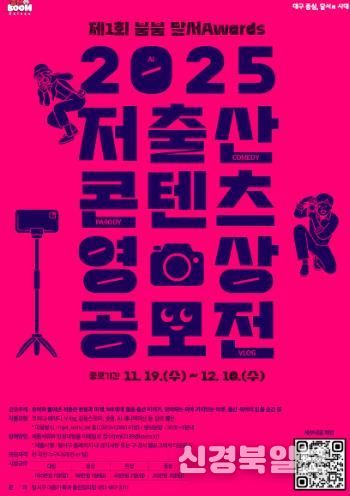 [ 신경북일보 ] 대구 달서구는'출산BooM 달서'프로젝트 일환으로 MZ 청년세대의 저출산 긍정 인식 확산과 참여형 홍보를 위해‘제1회'출산BooM 달서'저출산 콘텐츠 영상 공모전’을 개최한다.