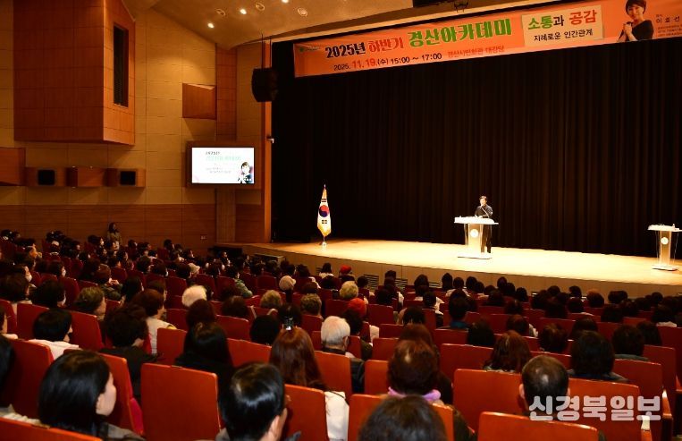 [ 신경북일보 ] 경산시는 19일 경산시민회관 대강당에서 시민 600여 명이 참여한 가운데 『2025년 하반기 경산 아카데미』를 성황리에 개최했다. 이번 경산 아카데미는 숭실사이버대학교 학과장 이호선 교수를 초청하여‘소통과 공감, 지혜로운 인간관계’라는 주제로 진행됐다.