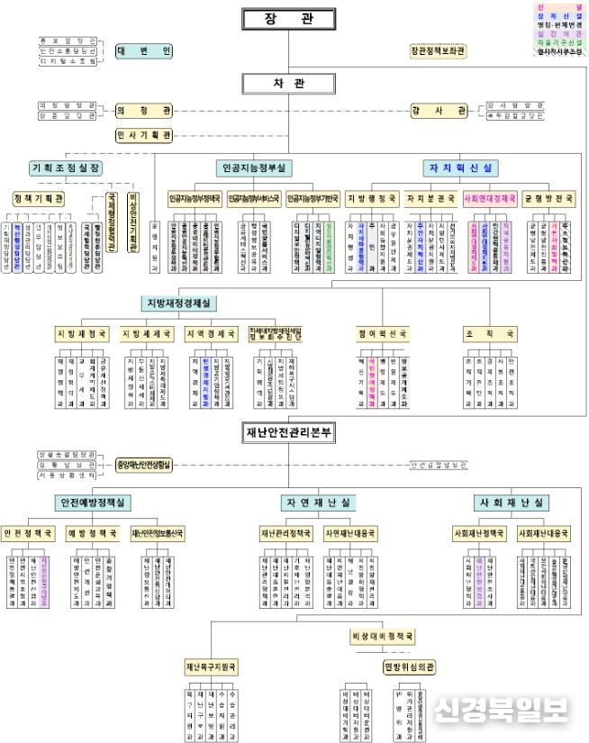 [ 신경북일보 ] 행정안전부는 인공지능(AI), 지방정부 및 국민안전 정책 수준을 한단계 더 높이고, 국정과제 추진동력을 강화하기 위한 조직개편을 실시했다고 밝혔다.
