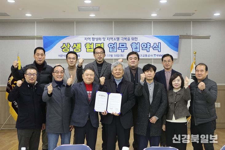 [ 신경북일보 ] 대구교통공사는 지역경제 활성화 및 지역소멸 극복을 위한 협력체계를 구축하기 위해 지난 11월 6일 대구서문시장연합회와, 18일에는 서문시장상가연합회와 상생협력 업무협약(MOU)을 체결했다.