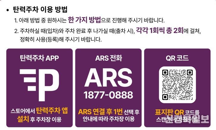 모바일 사용이 어려운 시민들은 주차표지판의 ARS 번호로 전화해 주차장 번호와 차량번호를 입력하면 된다. 출차 시에는 카드번호 등록을 통해 자동 결제가 진행된다.
