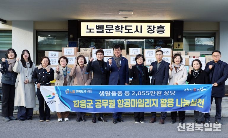 [ 신경북일보 ] 장흥군 공무원 122명이 공적 항공마일리지를 활용해 마련한 20,558,250원 상당의 생필품 197점을 지역 취약계층에 전달했다.