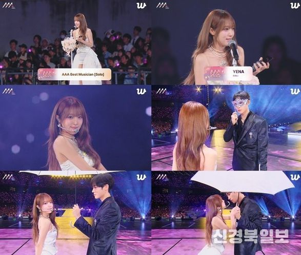 [ 신경북일보 ] 가수 최예나(YENA)가 'AAA' 베스트 뮤지션 상을 수상, 추영우와 설렘 퍼포먼스로 존재감을 드러냈다.