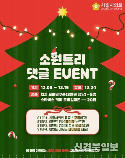 [ 신경북일보 ] 경기 시흥시의회가 다가오는 성탄절을 맞아 시민들과 따뜻한 마음을 나누고 소통을 강화하기 위해 ‘소원트리 댓글 이벤트’를 진행한다.