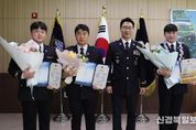 [ 신경북일보 ] 울진해양경찰서는 4월 1일 서장실에서 경찰관 승진 임용식을 거행했다. 이날 행사에서는 정일권 경사가 경위로, 최정현·김형민·정덕원·황하늘·이경락·김동우 순경이 경장으로 각각 승진했다. 총 7명의 경찰관이 승진 임용됐다. 임용식에는 승진 대상자 3명과 배병학 서장, 각 과장 등 간부진, 그리고 소속 직원 30여 명이 참석했다. 임명장 수여, 계급장 부착, 꽃다발 전달, 서장 격려 인사 등의 순서로 진행됐다. 배병학 울진해양경찰서장은 승진자들에게 "영광스러운 승진 임용을 축하 하고, 계급장이 무거워진 만큼 더 큰 책임감을 갖고 맡은 역할을 충실히 수행하여 국민을 위하는 해양경찰이 되어주길 바란다"고 말했다.