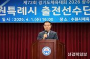 [ 신경북일보 ] 수원특례시의회는 1일 수원시체육회관 2층 대회의실에서 열린 '제72회 경기도체육대회 수원시 선수단 결단식'에 참석해 선수단을 격려하고 선전을 기원했다. 이번 결단식은 오는 4월 16일부터 18일까지 광주시에서 열리는 제72회 경기도체육대회를 앞두고 수원시 선수단의 각오를 다지고 사기를 높이기 위해 마련됐다. 이날 행사에는 수원특례시의회 의장을 비롯해 수원시장, 수원시체육회장, 체육회 임원, 선수단 등 약 180여 명이 참석했으며, 출전보고와 단기 수여, 선수대표 선서 등이 진행됐다. 특히 수원시는 총 473명의 선수단이 출전해 27개 종목에서 기량을 겨룰 예정이다. 수원특례시의회는 결단식에 참석해 선수단의 사기를 북돋고, 시민과 함께하는 체육도시 수원의 위상을 높이기 위한 응원의 뜻을 함께했다. 이재식 의장은 축사를 통해 “그동안 흘린 땀과 노력이 결실을 맺을 시간이 다가왔다”며 “수원 선수단이 최고의 기량과 스포츠 정신으로 대회에 임해 시민들에게 큰 감동을 전해주길 바란다”고 말했다. 이어 “결과도 중요하지만 정정당당한 경기와 서로를 믿는 팀워크가 더욱 빛날 것”이라며 선수단의