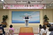[ 신경북일보 ] 동두천시는 4월 1일 시청 대회의실에서 4월 명예시장으로 위촉된 조황래 동두천중앙성모병원 원장과 전 직원이 참석한 가운데 월례조회를 개최했다. 이날 식전 공연에서는 송내동 주민자치 프로그램 댄스트롯장구팀의 재능 기부로 춤과 노래를 선보여 분위기를 더했다. 박형덕 동두천시장은 제19회 암 예방의 날 유공 공무원 1명(▲훈격 장관)과 자원봉사 활동 유공 시민 1명(▲훈격 도지사)에게 표창을 전수했다. 또한, 통합방위지원태세 업무 유공 시민 2명, 시정발전 유공 시민 20명에게 표창을 수여했으며, 2025년도 주요업무 자체평가 15개 부서에 각각 상장을 수여하고 격려했다. 훈시 사항으로는 첫째, 시민들의 야외 활동이 본격화되는 시기인 만큼 산불 예방과 화재 안전관리에 만전을 기해 달라고 했다. 둘째, 국제유가와 물가 급등으로 서민 경제가 그 어느 때보다 힘든 시기인 만큼 민생 안정을 위해 따뜻한 나눔 행정을 펼쳐줄 것을 강조했다. 끝으로, 시정 발전을 위해 멈추지 않는 혁신을 이어 나가자고 독려했다. 그 일환으로 10년간 방치됐던 소요산 축산물 브랜드육타운을 휴식과 관광이