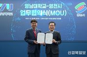[ 신경북일보 ] 영천시는 28일 영남대학교 천마아트센터 이시원 글로벌컨벤션홀에서 영남대학교와 지역 발전과 혁신 생태계 조성을 위한 상호 협력 업무협약(MOU)을 체결했다. 이번 협약은 양 기관이 자원 공유와 프로그램 공동 운영 등 상호 교류와 협력에 필요한 사항을 합의한 것이다. 주요 내용으로는 ▲경북 RISE 사업 공동 대응 ▲AI 등 신산업 인력양성 ▲문화·인문 콘텐츠 개발 ▲국가 공모사업 공동 참여 ▲공동 학술행사 개최 및 인적 교류 활성화 등으로, 지역사회와 대학이 함께 성장할 수 있는 협력 기반을 마련했다. 협약식 이후 진행된 ‘YU프론티어 포럼’에서는 최기문 영천시장이 ‘지방소멸시대, 변화와 혁신으로 영천의 미래를 디자인한다’를 주제로 강연을 펼쳤으며, 대학의 우수한 연구 역량과 지역 산업을 연결해 지속 가능한 혁신 생태계를 조성하는 것이 지역 발전의 핵심임을 강조했다. 최기문 시장은 “이번 협약을 계기로 지역과 대학이 긴밀히 협력해 미래 성장 동력을 발굴하고, 지속 가능한 발전 기반을 마련하겠다”며, “앞으로도 대학과 지역사회가 함께 성장할 수 있는 다양한 협력 사업을 적극 추진해,