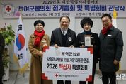 [ 신경북일보 ] 부여군의회는 21일 대한적십자사봉사회 부여군협의회 정기총회에서 2026년도 대한적십자사 특별회비 전달식을 가졌다. 이날 전달식에는 박순화 부의장을 비롯해 서정호 총무위원장, 장소미 산업건설위원장 등 부여군의회 의원들이 참석해 나눔의 뜻을 함께했다. 군의회는 이번 특별회비 전달을 통해 재난·재해 발생 시 긴급구호와 취약계층 지원, 지역사회 복지 증진 등 적십자 인도주의 활동을 지속적으로 뒷받침하겠다는 뜻을 전했다. 특히 매년 적십자 특별회비 전달에 적극 동참하며 나눔과 연대의 가치를 꾸준히 실천해 오고 있다. 박순화 부의장은 “적십자 특별회비가 생계와 건강, 주거 등으로 어려움을 겪는 우리 주변 이웃들에게 작지만 따뜻한 희망이 되기를 바란다”며, “부여군의회도 군민과 함께 나눔 문화 확산에 앞장서 지역사회에 온기가 이어질 수 있도록 노력하겠다”고 말했다. [뉴스출처 : 부여군의회]
