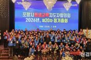 [ 신경북일보 ] 포항시 평생교육지도자협의회는 21일 더 퀸 갤럭시홀에서 2026년도 정기총회를 개최했다. 이날 총회에는 장상길 포항시 부시장, 이재진 포항시의회 부의장, 시·도의원 등 내빈을 비롯해 협의회 회원 200여 명이 참석한 가운데 지난해 성과를 격려하고, 새로운 각오를 다지는 자리를 가졌다. 협의회 홍보 영상을 시작으로 인사말, 축사, 표창패 및 감사패 수여 순으로 진행된 이날 총회의 마지막에는 장상길 부시장이 2026년 포항시 사자성어 ‘위민충정(爲民忠情)’이라는 구호를 선창하고 200여 명의 협의회 회원들 ‘포항’을 외치며 결의를 다지는 퍼포먼스를 펼쳐 눈길을 끌었다. 김용재 포항시 평생교육지도자협의회 회장은 “지난해 포항에서 진행된 경상북도 평생학습박람회의 성공적인 개최를 지원하고, 찾아가는 동네경로당대학 등 사업을 통해 많은 보람을 느꼈다”며, “올해도 마을평생교육 활성화에 더욱 노력하겠다”고 말했다. 장상길 포항시 부시장은 “올해도 평생교육지도자협의회와 민관 협력을 더욱 강화하고, 모든 시민이 평생학습을 통해 삶의 행복을 실현하는 포항을 만들어 나가자”는 격려사를 전했다. &n
