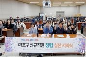 [ 신경북일보 ] 박강수 마포구청장은 12월 4일 오전, 마포구청 시청각실에서 신규 직원 45명과 함께 청렴 실천 서약을 하고 반부패 청렴 의지를 다졌다. 이날 신규 직원들은 청탁 근절과 직무수행의 공정성 등에 관한 '부정청탁 및 금품등 수수의 금지에 관한 법률'과 '서울특별시 마포구 공무원 행동강령'의 주요 내용을 담은 반부패 청렴서약서를 낭독했다. 이어 대표 신규 직원에게 구청장이 직접 청렴 배지를 달아주며, 공직자로서의 각오를 되새기는 시간을 끝으로 행사를 마무리했다. 박강수 마포구청장은 “청렴 실천 서약식과 교육을 통해 청렴의 가치를 최우선으로 삼고, 공직 생활을 이어가기를 바란다”라며 “공직자로서 첫발을 내디딘 여러분의 앞날을 응원하겠다”라고 말했다. 한편, 마포구는 청렴의 가치관을 재정립하고 부정부패의 유혹에 타협하지 않겠다는 의미로 ‘청렴, 나부터’라는 문구로 자체 제작한 청렴 배지를 직원들에게 배부하여 업무시간 중 상시 패용할 수 있도록 했다. 또한 올해 ‘청렴실무추진TF 회의’를 개최하여 ‘마포구 반부패·청렴도 향상 종합 계획’을 수립하고, ‘청렴추진협의체 회의’, 청렴