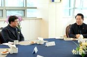 [ 신경북일보 ] 전라남도는 22일 나주 한국전력공사 본사에서 김성환 기후에너지환경부 장관과 오찬 간담회를 열고, 발전사업 인허가권 이양 등 전남을 대한민국 에너지 신산업의 거점으로 육성하기 위한 주요 현안을 건의했다. 김성환 기후부 장관의 취임 후 첫 호남 방문 일정의 하나로 열린 이번 간담회에는 김영록 전남도지사와 신정훈 국회의원, 김동철 한전 사장, 윤병태 나주시장, 박진호 한국에너지공대 총장대행 등 지역 에너지 생태계를 이끄는 주요 인사 15명이 참석했다. 김영록 지사는 간담회에서 전남이 대한민국 에너지 전환의 핵심 거점임을 강조하며, 광주·전남 행정통합의 성공적 추진과 재생에너지 중심 지역발전을 위한 정부 차원의 적극적인 지원을 요청했다. 특히 국무총리가 발표한 행정통합 지원 인센티브를 토대로, 에너지 분야 특별법에 필수 특례가 반영되도록 기후부의 관심과 역할을 건의했다. 구체적으로 행정통합과 관련해 태양광 50MW, 해상풍력 100MW 이하 발전사업 인허가권의 특별시 이양, 해상풍력 항만과 배후단지 등 인프라 지원, 분산에너지 특화단지 내 직접전력거래 활성화 등 제도 개선 사항을 제시했다
