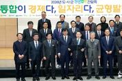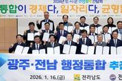 [ 신경북일보 ] 전라남도는 16일 전남도청 왕인실에서 ‘2026년 도-시군 상생협력 간담회’를 열어 지역 대도약을 위한 광주·전남 행정통합 추진에 도와 22개 시군이 공동 보조를 맞추기로 했다. 간담회는 김영록 전남도지사와 22개 시장·군수 등 관계자 100여 명이 참석한 가운데, 광주·전남 행정통합 추진계획과 전남도 재생에너지 추진전략을 중심으로 발표와 토론이 진행됐다. 이들은 광주·전남 행정통합을 통해 대한민국 제1호 통합 광역지방정부 출범을 목표로, 도와 시군이 상생 협력 의지를 재확인하고, 전남의 미래 성장 전략을 논의했다. 특히 특별법 제정안을 중심으로 행정통합 추진 경과와 향후 일정을 공유하고, 전남을 대한민국 첨단산업을 이끄는 ‘재생에너지의 심장’으로 육성하기 위한 시군의 협력 방향과 역할 분담에 공감대를 형성했다. 김영록 지사와 전남시장군수협의회는 광주·전남 행정통합 환영 성명서를 발표하고, 초광역 경제 중심지 도약을 위한 행정 통합에 적극 협력할 뜻을 밝혔다. 또한 22개 시군의 고유한 특성과 자율성이 존중되는 균형발전형 통합과 민주적 합의, 도민 공감대 형성에 책임