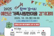 [ 신경북일보 ] 예천군에서는 오는 25일 오전 9시 30분부터 호명읍 신도시패밀리파크 잔디광장에서 ‘2025 예천군 가족사랑한마음 걷기대회’ 가 열린다. 예천군체육회가 주최·주관하고 예천군이 후원하는 이번 걷기 행사는 패밀리파크 잔디광장에서 출발해 범우리공원과 실개천을 거쳐 다시 패밀리파크 잔디광장으로 돌아오는 약 3.5km 코스로 진행된다. 참가 제한이나 별도 신청 없이 누구나 행사 당일 오전 9시 30분까지 행사장을 찾아 현장 접수하면 되며, 선착순으로 진행되는 접수는 참가 리플릿이 소진되면 마감된다. 걷기 코스 완주와 더불어 참가 리플릿을 활용한 스탬프 미션에 성공한 모든 참가자에게 완보기념품이 증정되고 인생네컷 가족사진 만들기 및 놀이체험 부스 운영, 댄스공연 및 버블쇼 등 풍성한 프로그램도 준비되어 있다. 또한 걷기 코스 안에 댄스존, 비누방울존, 어린이보물찾기존 등 다양한 이벤트존이 마련되어 있어 걷는 즐거움을 배가시키고, 행사 막바지에는 푸짐한 경품추첨도 예정되어 있다. 이철우 예천군체육회장은 “이번 대회가 가족 사랑과 건강을 되새기고, 지역 주민 간 더욱 친밀한 유대감을