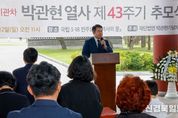[ 신경북일보 ] 이정선 광주시교육감이 12일 국립5·18민주묘지 ‘역사의 문’ 앞에서 열린 ‘민주화의 새벽기관차 박관현 열사 제43주기 추모식’에 참석했다. 이날 추모식에는 이정선 교육감을 비롯해, 강기정 광주광역시장, 윤목현 5·18기념재단 이사장, 이개호 영광군 국회의원, 유족 및 시민사회단체 관계자 등이 참여해 열사의 숭고한 뜻을 기렸다. 이정선 교육감은 “박관현 열사의 숭고한 정신을 잊지 않고 기억하는 길은 5·18 정신을 미래 세대에 계승하고 발전시키는 교육이다”며, “오월 정신을 전국으로, 세계로 알리고 확산하여 민주주의와 인권, 평화의 가치를 교육 현장에서 실천해 나가겠다”고 밝혔다. [뉴스출처 : 광주시교육청]
