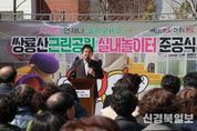 [ 신경북일보 ] 박강수 마포구청장은 3월 13일 오후 1시 30분, 쌍룡산근린공원(염리동 532-5)에서 열린 ‘쌍룡산근린공원 실내놀이터 조성사업 준공식’에 참석해 어린이와 가족을 위한 새로운 놀이공간의 조성을 축하했다. 쌍룡산근린공원 실내놀이터는 미세먼지와 폭염, 한파 등 날씨의 영향을 크게 받지 않고 아이들이 사계절 내내 이용할 수 있도록 조성된 공간이다. 실내에는 통슬라이드와 낚시놀이, 미디어존 등 다양한 놀이시설을 갖췄고, 보호자를 위한 휴식 공간도 함께 마련해 가족 단위 이용객의 편의를 높였다. 여기에 옥상 잔디광장, 휴식 공간이 더해지면서 실내 놀이와 야외 활동을 함께 즐길 수 있도록 했으며, 주변에는 수목관찰 오솔길과 매화나무·산수유나무 등 다양한 수목과 초화류를 갖춰 어린이들이 자연을 가까이에서 함께할 수 있도록 했다. 박강수 마포구청장은 실내놀이터 내부와 옥상 공간 등을 둘러본 뒤 주민들과 함께 기념식수를 하며 현장을 살폈다. 박 구청장은 “최근 우천과 폭염, 폭설 등 날씨와 관계없이 아이들이 안전하게 이용할 수 있는 실내공간의 필요성이 점점 커지고 있다”라며, “쌍룡