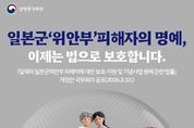 [ 신경북일보 ] 일본군 '위안부' 피해자의 명예, 이제는 법으로 보호합니다. 「일제하 일본군 위안부 피해자에 대한 보호·지원 및 기념사업 등에 관한 법률」 개정안 국무회의 공포(2026.3.10.) 피해자의 명예를 훼손하는 행위는 금지되고, 피해사실에 대한 허위 사실을 유포하는 경우 처벌받게 됩니다. - 처벌 수위 : 5년 이하의 징역 또는 5000만 원 이하의 벌금 - 적용 범위 : SNS, 온라인커뮤니티, 출판물, 공연 등 모든 온·오프라인 채널 포함 - 적용 시기 · 명예훼손 금지: 공포 후 즉시 · 허위사실 유포 금지: 공포 후 3개월(6.11)부터 예술·학문·연구·보도 등을 목적으로 하는 경우에는 처벌 대상에서 제외됩니다. 피해자의 명예와 존엄을 지키겠습니다. 성평등가족부는 일본군 '위안부' 피해자의 명예와 존엄을 보호하고 올바른 역사 인식 확산을 위해 관련 정책을 지속적으로 추진하겠습니다. [뉴스출처 : 성평등가족부]