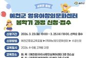 [ 신경북일보 ] 예천군이 지역 내 영유아를 대상으로 창의력과 건강한 성장을 돕는 봄학기 창의문화센터 프로그램 수강생을 모집한다. 이 프로그램은 경상북도에서 군이 직접 운영을 지원하는 유일한 문화센터 사업으로, 지난해에는 90개 강좌에 3,029명이 참여해 미취학 아동 가정의 높은 호응을 얻었다. 올해도 다양한 강좌가 마련돼 이용자들의 기대를 모으고 있다. 강좌는 영유아의 신체 발달을 위한 ‘콩콩 베이비 체육’, ‘액티브 놀이터’, 오감 자극을 위한 ‘오감몽글아기놀이’, 창의성과 감각 발달을 돕는 ‘소리상상 뮤직클래스’, ‘리틀보이스 클래스’, ‘니브아트 스튜디오’ 등으로 구성됐다. 수강 신청은 23일 오전 10시부터 25일 오후 6시까지 예천군 통합교육포털에서 선착순으로 진행된다. 프로그램은 4월부터 5월까지 2개월간 운영되며, 화요일과 목요일에는 예천읍 아이사랑안심케어센터 3층 댄스실, 주말에는 호명읍 복합커뮤니티센터 2층 GX룸에서 열린다. 예천군 관계자는 "영유아 시기는 창의성과 사회성을 키우는 중요한 시기"라며, "아동의 연령별 발달 단계에 맞춘 다양한 창의, 신체활동 프로그램을 준비한 만큼, 많은 가정의 관심과 참여를 바
