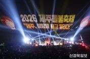 [ 신경북일보 ] ‘제주, 희망을 품고 달리다!’라는 주제로 새별오름 일원을 뜨겁게 달궜던 ‘2026 제주들불축제’가 14일 밤, 화려한 피날레를 장식하며 성황리에 막을 내렸다. 이번 축제는 들불축제 본연의 전통적 가치를 계승하면서도 첨단 미디어 기술을 접목해 눈길을 끌었다. 특히 ‘방문객 중심’, ‘친환경’, ‘상생’이라는 시대적 요구를 충실히 담아내며 미래지향적인 새로운 축제 모델을 성공적으로 제시했다. 축제의 하이라이트인 14일 저녁에는 ‘희망의 찬가’를 주제로 웅장한 퍼포먼스가 펼쳐졌다. 제주 전 지역 민속보존회가 하나 되어 펼친 희망기원 풍물대행진을 시작으로, 오름 전면을 캔버스 삼아 레이저와 불꽃이 결합된 융복합 미디어아트 쇼 ‘디지털 불놓기’가 밤하늘을 수놓으며 관람객들의 탄성을 자아냈다. 축제의 대미를 장식한 ‘자우림’의 피날레 콘서트 ‘희망 쏟아진다’는 관람객들에게 따뜻한 위로와 벅찬 희망을 선사했다. 낮 시간대에도 풍성한 볼거리와 즐길 거리가 이어졌다. 새봄 묘목 나눠주기를 비롯해 목장길 에코트레일런, 제주시민 노래자랑, 청소년 댄스 경연대회가 열려 시민과 관광객이 함께 어우러졌다