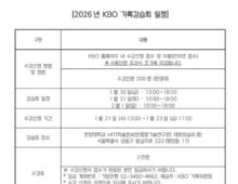 [ 신경북일보 ] 2026년 KBO 기록강습회가 1월 30일(금)부터 2월 1일(일)까지 서울 한양대학교에서 개최된다. 기록강습회는 야구 공식기록법의 보급과 이해를 통한 저변 확대를 목적으로 프로야구 원년인 1982년부터 개최됐다. 강습회에서는 KBO 공식기록원들의 현강감 있는 강의를 바탕으로 프로야구에서 사용되는 공식기록지 작성법, 기록 및 경기 규칙 등이 함께 다루어질 예정이다. 수강 신청자에게는 현장에서 실습용 야구기록지와 기록 가이드북이 교재로 제공된다. 강습회 종료일에는 전체 강습 과정의 이해도를 가늠할 기록지 작성 테스트가 실시되며, 테스트 성적 우수자에게는 수료증이 발급된다. 수강 신청은 1월 21일(수) 오후 1시부터 23일(금) 오후 5시까지 KBO 홈페이지 수강신청 접수 창을 통해 가능하며, 기타 문의사항은 KBO 홈페이지 내 기록위원회 스코어링 필드 1:1 문의하기를 이용하면 된다. [뉴스출처 : KBO]