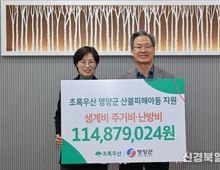 [ 신경북일보 ] 초록우산 경북지역본부에서는 12월 2일 14시 영양군청과 산불피해 아동가정을 방문해 후원금 전달식을 가졌다. 이번 행사는 산불로 인해 생활터전을 잃은 지역 아동가정의 안정적인 생활 회복을 돕기 위해 마련됐으며, 초록우산 박정숙 본부장 및 관계자, 지원 대상 가정 등이 참석한 가운데 진행됐다. 군청에서 전달식을 가진 후 주거지원 가정을 방문하여 입주식을 진행했으며, 초록우산, 영양군 관계자는 대상 가정을 함께 격려하고 완공된 주택을 둘러보는 시간을 가졌다. 초록우산 어린이재단 경북지역본부에서는 영양군 산불피해 아동가정에 총 1억 1천 487만원 상당의 긴급지원을 시행했다. 지원 내용에는 ▲주택 전소 5가구 및 주택 일부 소실 등 총 8가구에 대한 긴급생계비, ▲석보면 1가구 대상 주거지원, ▲전소가구 겨울나기를 위한 난방비 및 방한용품 지원 등이 포함됐다. 박정숙 초록우산 경북지역본부장은 “갑작스러운 산불로 삶의 터전을 잃은 아동과 가족들이 하루빨리 안정적인 생활을 되찾길 바란다”며 “앞으로도 지역사회와 협력해 피해 가정 지원에 최선을 다하겠다”고 말했다. &