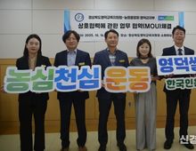 [ 신경북일보 ] 영덕교육지원청은 10월 16일 농협중앙회 영덕군지부와 “스쿨팜(학교농장) 정착과 확산”을 위한 업무협약을 체결했다. 스쿨팜은 학교(스쿨, School)와 농장(팜, Farm)의 합성어로, 학교 내 유휴공간을 활용해 농장물을 직접 심고 가꾸는 프로그램이다. 식재부터 재배, 수확, 음식 조리까지 연결되는 과정을 경함하며 학생들은 농업과 먹거리의 중요성을 자연스럽게 익힌다. 정창미 영덕군지부장은 “스쿨팜은 단순한 체험을 넘어 학생들이 농업을 이해하고 생명의 소중함을 느낄 수 있는 교육의 장”이라며 “앞으로도 학생들에게 즐겁고 유익한 농업 체험 기회를 제공하기 위해 노력하겠다.”고 말했다. 이성호 교육장은 “농업을 접할 기회가 적은 학생들이 농작물을 가꾸고 수확하는 과정을 통해 즐거움과 더불어 성취감도 느끼고 학생들 사이에 존중심이 생기는 좋은 계기가 될 것”이라고 밝혔다.