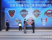 [ 신경북일보 ] 김천상무가 스포츠안전재단의 스포츠이벤트 안전경영시스템 인증을 획득했다. 김천상무프로축구단이 12월 3일 서울 송파구 올림픽 파크텔에서 열린 스포츠안전재단의 스포츠이벤트 안전경영시스템(KSSF20211)을 인증받았다. 스포츠이벤트 안전경영시스템은 국제표준화기구(ISO)를 기반으로 국내 스포츠 이벤트 실정에 맞추어 안전 관리 체계 및 운영 수준을 향상시키기 위한 목적으로 마련된 표준 요구 규격이다. 김천상무는 지난 7월부터 약 4개월에 걸쳐 컨설팅, 현장심사, 매뉴얼과 절차서 및 안전가이드 등 총 9종의 문서 제정, 최종 심사를 거쳐 안전경영시스템을 획득했다. 김천상무 이재하 대표이사는 “안전은 두 번 세 번 강조해도 지나침이 없다. 이번 스포츠이벤트 안전경영시스템 인증을 통해 더욱 안전한 홈경기를 운영할 수 있게 됐다. 앞으로도 김천상무 홈경기를 찾아주시는 김천 시민과 축구팬 여러분의 안전한 관람 환경 조성을 위해 최선을 다하겠다.”라고 말했다. 마케팅팀 백재호 팀장은 “올해 안전경영시스템을 준비하면서 구단 임직원의 안전 의식 제고와 실질적인 안전 시스템을 구축할 수 있