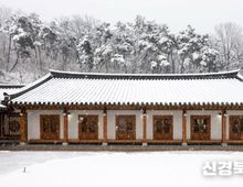[ 신경북일보 ] 지난 24일 칠곡군에 봄철 눈이 내리면서 향사아트센터 일대가 저녁까지 하얗게 덮였다. 이날 고지대인 한티재에는 최대 13cm의 적설이 기록됐다. 이날 오전부터 내리기 시작한 눈은 오후와 저녁까지 이어졌다. 전통 한옥 양식의 기와지붕과 마당, 주변 수목 위로 눈이 쌓이며 평소와 다른 모습이 연출됐다. 검은 기와 위에 쌓인 눈은 건물의 곡선을 더욱 또렷하게 드러냈다. 향사아트센터는 박귀희 명창의 예술세계를 기리기 위해 조성된 문화시설이다. 박귀희 명창의 호‘향사’를 따 명명됐으며, 전시 공간과 공연장을 갖추고 있다. 봄철 눈이 이어지면서 방문객 수는 평소보다 줄었다. 다만 눈 덮인 전통 건축을 촬영하려는 주민들의 발길은 이어졌다. 시설 관계자는 “미끄럼 사고 예방을 위해 안전 점검을 실시했다”고 밝혔다. 24일 저녁까지 이어진 이번 눈은 향사아트센터에 이례적인 봄 설경을 남겼다.
