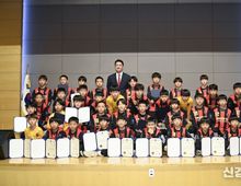 [ 신경북일보 ] 달성군은 지난 12월 5일, 달성군청 군민소통관에서 ‘달성군청 유소년축구단’ 창단식을 개최했다. 이날 창단식에는 선수 및 학부모와 최재훈 달성군수, 김은영 달성군의회 의장을 비롯한 김현우 달성교육지원청장, 김성제 달성군체육회장, 강성곤 달성군축구협회장 등 100여 명이 참석해 자리를 빛냈다. ‘달성군청 유소년축구단 U-12 화원’은 38명의 화원초등학교 학생 선수들로 구성됐으며 단장, 감독, 코치를 비롯한 지도진과 함께 지역 유소년 축구의 발전을 이끌 예정이다. 유소년 축구단의 창단은 지난해 화원초 축구부 인수와 창단 논의를 시작으로, 올 상반기 조례 제정과 예산 확보를 거쳐 이뤄졌다. 달성군과 대구시교육청은 지난 7월 업무협약을 체결했으며, 이번 창단식을 통해 그 결실을 맺었다. 달성군은 유소년축구단의 성공적인 운영을 위해 행정적, 재정적 지원을 아끼지 않겠다고 밝혔다. 이를 통해 지역 내 유소년 체육 인재들을 조기에 발굴하고, 체계적으로 육성할 수 있는 기반을 조성할 계획이다. 최재훈 달성군수는 “이번 창단식이 지역 아이들이 자신의 꿈을 펼칠 수 있는 소중한 첫걸음