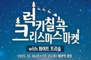[ 신경북일보 ] 경북 칠곡군은 오는 12월 6일부터 왜관역 광장 일원에서‘2025 럭키칠곡 크리스마스 마켓’을 개최한다. 겨울축제가 없는 칠곡에서 연말연시를 따뜻하고 환하게 밝혀줄 겨울철 신규 관광콘텐츠로 기획된 럭키칠곡 크리스마스 마켓은 ‘with 화이트 트리숲’을 부제로 12. 6. / 12. 13. / 12. 20. / 12. 24. / 12. 25. 총 5회에 걸쳐 오후 4시부터 오후 9시까지 운영한다. 지역 소상공인 셀러가 참여하고 크리스마스 디자인으로 예쁘게 꾸며진 마켓은 ▲크리스마스 용품 ▲수공예품 ▲먹거리(겨울간식 등) ▲농․특산품 등 다양한 제품을 선보일 예정이며 미니트리&케익&쿠키 만들기, 소원등 달기, 군밤체험 등 가족 및 연인들에게 특별한 추억을 선사할 체험 콘텐츠도 준비하여 관광객을 맞이할 예정이다. 또한 마켓 운영일에는 버스킹, 마술, 마임 및 지역민이 참여한 성가대 등 다채로운 공연과 인플루언서 ‘산티’의 1분 캐리커쳐 및 칠곡 산타할매 등 이색 이벤트도 현장에서 진행되어 색다른 재미를 더할 예정이다. 특히 행사기간 동안 왜관역 광장에 대형트리를 포함한‘화이트 트리숲’을