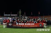[ 신경북일보 ] 김천상무가 지난 시즌에 이어 3위로 2025시즌을 마무리했다. 김천상무프로축구단(대표이사 이재하)이 11월 30일 토요일 16시 30분, 김천종합운동장에서 열린 ‘하나은행 K리그1 2025’ 38R에서 대전하나시티즌(이하 대전)에 0대 3으로 패하며 2025시즌 K리그1 3위를 기록했다. 김천상무는 2024시즌에 이어 상위권 성적을 올리며 내년을 더욱 기대하게 했다. 특히 정정용 감독도 “내년은 시민구단 전환에 중요한 해”라며 감독으로서의 노력을 다짐했다. 김천상무는 4-4-2 포메이션을 가동했다. 골키퍼 장갑은 문현호가 꼈다. 백포는 박철우, 김민규, 이정택, 김태환이 구축했다. 중원은 박태준과 이수빈이 구성했다. 양쪽 날개에 김주찬과 고재현이 포진했고, 이건희와 박세진이 최전방에 포진했다. 실수로 인한 아쉬운 선제 실점 전반 0대 1 종료 김천상무는 2025시즌 한 해 동안 힘찬 응원을 보낸 팬들에게 감사의 마음을 담은 ‘Thanks Day’ 이벤트로 관중을 맞이했다. 홈팬들도 2위 탈환을 위해 힘찬 응원으로 선수들과 함께 호흡하며 경기를 시작했다. 경기 초반을 주도한 팀은 김