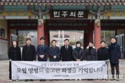 [ 신경북일보 ] 광산구의회가 8일 국립5·18민주묘지 합동 참배와 배식 봉사활동을 통해 병오년 새해 의정활동의 포문을 열었다. 이번 국립5·18민주묘지 합동 참배는 2026년 의정활동의 출발을 민주·인권·평화의 ‘5·18 정신’과 함께하고자 하는 의지를 담아 마련됐다. 특히 새해 첫 공식 일정을 참배로 시작한 것은 구민을 향한 책임 있는 의정활동과 올바른 지방자치 실현에 대한 각오를 보여주는 행보로 의미를 더했다. 이날 참배에는 김명수 의장을 비롯한 광산구의원들과 의회사무국 전 직원 등 60여 명이 참석했다. 참석자들은 헌화와 분향, 묵념으로 민주 영령의 숭고한 희생을 기리며 민주주의 가치 계승을 다짐하고 지역사회 발전과 구민의 안녕을 기원했다. 참배 후 김 의장과 의원들은 더불어락 노인복지관을 방문해 배식 봉사활동을 펼쳤다. 의원들은 어르신들을 위해 직접 중식 배식에 참여하며 나눔과 봉사의 가치를 실천했으며, 종사자들과의 간담회를 통해 복지 현장의 애로사항을 청취하는 등 소통의 시간도 가졌다. 김명수 의장은 “새해를 맞아 첫 공식 의정활동으로 민주묘지와 복지 현장을 찾았다는 점에서 의미가 크다”