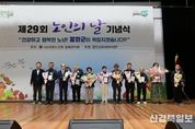 [ 신경북일보 ] 봉화군은 지난 23일 봉화군민회관에서 ‘제29회 노인의 날 기념식’을 개최했다. 이번 행사는 (사)대한노인회 봉화군지회 주관으로 마련됐으며, 경로당 임원, 지역 어르신, 내빈 등 약 750여 명이 참석한 가운데 노인복지 유공자 표창과 기념행사, 축하공연 등이 성황리에 진행됐다. 기념식에 앞서 열린 식전행사에서는 봉화시장 문화사랑회의 색소폰 연주 등 공연이 펼쳐져 어르신들의 큰 호응을 얻었으며, 본 행사에서는 노인복지 향상에 기여한 유공자 28명에게 표창이 수여되어 그간의 공로를 기리는 시간이 마련됐다. 이어진 순서로는 평양예술공연단의 문화공연과 오찬이 진행되어 참석한 어르신들에게 즐거움과 힐링의 시간을 선사했다. 이날 행사는 고령화 사회 속 어르신의 삶과 권익을 되새기며 지역사회 전체가 함께 존중과 배려의 문화를 확산하는 뜻깊은 계기가 됐다. 박현국 봉화군수는 “어르신 여러분의 헌신이 있었기에 오늘의 봉화가 있다. 앞으로도 다양한 복지정책과 여가 프로그램을 통해 건강하고 편안한 노후를 보내실 수 있도록 최선을 다하겠다.”라고 전했다.