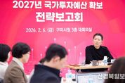 [ 신경북일보 ] 구미시는 지난 6일 시청 대회의실에서 실·국·소장과 부서장 등 100여 명이 참석한 가운데‘2027년 국가투자예산 확보 전략보고회’를 열고, 역대 최대 규모 국비 확보를 위한 본격 행보에 돌입했다. 이번 보고회는 2027년도 국비 확보 목표액을 9,300억원 이상으로 설정하고, 시의 미래 성장을 견인할 신규 사업과 현안 사업을 중심으로 정부예산 편성 기조에 맞춘 전략적 대응 방안을 논의하기 위해 마련됐다. 보고회에서는 부서별로 발굴된 신규 사업의 타당성을 면밀히 검토하고, 공모사업 추진을 위한 사전절차 이행 상황을 점검했다. 특히 여러 부서의 협업이 필요한 현안 사업에 대해서는 공동대응 전략을 마련해 행정 효율성을 높이기로 했다. 분야별 주요 국비 확보 대상 사업도 구체화했다. 경제분야는 △첨단반도체 소재·부품 Complex 구축 △국방반도체 클러스터 지정 △AI·방산 특화 공유공장 구축 △지역 주력 중소기업형 인공지능 데이터 가공 지원 △AX 자율제조 사이버융합보안 실증 지원 △차세대 배터리 전극제조 장비부품 테스트베드 구축 등이다. 사회간접자본(SOC)분야는 △구미