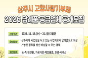 [ 신경북일보 ] 상주시는 2026년 고향사랑기부제에 참여할 답례품 공급업체를 오는 21일까지 공개모집 한다. 모집대상은 상주시에 사업장을 두고 있으며 답례품으로 제공 가능한 품목을 안정적으로 생산·배송 할 수 있는 업체이다. 모집분야는 ▲농·축·임산물, ▲가공식품·제조물품, ▲관광·서비스이다. 참여를 희망하는 업체는 11월 19일부터 21일까지 상주시청 세정과로 신청 서류를 방문 제출하고 서류심사와 답례품선정위원회 심의를 거쳐 최종 결정된다. 상주시는 현재 상주곶감, 상주화폐, 명실상감한우 선물 세트, 명실상주몰 모바일 상품권을 비롯하여 사과, 배 등 농·특산품과 낙동강자전거이야기촌 하늘자전거 체험이용권 등 22개 업체 33종의 답례품을 제공하고 있으며 이번 공모를 통해 상주시의 특색있는 다양한 답례품을 발굴하여 기부자에게 선택의 폭을 확대할 예정이다. 강영석 상주시장은 “상주시에 고향사랑기부금을 기부해 주신 분들께 고향의 우수 답례품을 제공하여 감사의 마음을 전하고, 지역경제 활성화에 보탬이 되도록 하겠다”고 말했다.