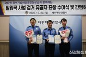 [ 신경북일보 ] 중부지방해양경찰청은 지난 20일, 태안해경서 소회의실에서 최근 태안 해상에서 발생한 밀입국 사범 검거와 관련해 유공자 표창 수여 및 간담회를 개최했다고 밝혔다. 이번 행사는 지난 10월 6일 태안 가의도 인근 해상에서 중국인 8명이 밀입국을 시도하다 해경에 검거된 사건과 관련해, 현장 대응에 기여한 직원들을 격려하고 군·경 협조체계 강화를 위해 마련됐다. 이날 중부해경청장은 밀입국 사범 검거에 공을 세운 태안해경서 수사과 박민호 경사와 206정 이재희 경장에게 표창을 수여하고, 직원들과의 간담회를 통해 현장 애로사항과 치안 대응 방안을 청취했다. 오 청장은 이어 제8해안감시대대를 방문해 군 관계자들과 간담회를 갖고, 향후 밀입국 등 해상 불법행위 대응을 위한 군·경 협조체계 강화 방안을 논의했다. 오상권 청장은 “최근 밀입국 시도가 소형화․고속화되고 있는 만큼, 초기 대응과 정보공유를 통한 군·경 간 공조가 더욱 중요하다”며 “앞으로도 국민이 안심할 수 있는 해상치안 확립을 위해 현장 대응역량을 지속 강화하겠다”고 말했다. [뉴스출처 : 중부지방해양경찰청]