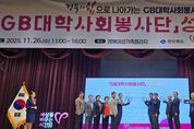 [ 신경북일보 ] 경상북도는 26일 경북여성가족플라자에서 ‘2025 GB(경북)대학사회봉사단 성과평가회’를 개최하고, 2025년 한 해 동안의 지역사회 곳곳에서 자원봉사로 활약한 GB대학사회봉사단의 성과를 공유하는 시간을 가졌다. 행사에는 GB대학사회봉사단 자원봉사자 300여 명과 김진현 경북도 안전행정실장, 최재혁 GB대학사회봉사단 단장(경북전문대학교 총장), 장유석 도종합자원봉사센터 이사장, 참여대학 총장을 비롯한 시군 자원봉사센터 관계자가 참석했다. 이날 행사에서는 2025년 모범적인 자원봉사활동으로 활약을 펼친 단원 61명은 경북도지사상, 경북도의장상, 경북교육감상, GB대학사회봉사단장상, 경상북도종합자원봉사센터 이사장상 등을 받았다. 이어서 GB대학사회봉사단과 시군 자원봉사 센터가 협업한 우수 자원봉사 사례발표 경진대회가 진행됐다. 이번 경진대회에는 구미대학교, 대경대학교, 선린대학교, 경북전문대학교, 경북보건대학교, 경북과학대학교 등 총 6개 대학이 참여해 올해 펼친 사업 성과와 우수 활동을 발표하며 실력을 겨루었다. 김진현 경상북도 안전행정실장은 “지역사회를 위해 시간과 열정을 기꺼이