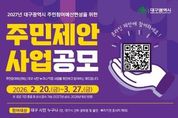 [ 신경북일보 ] 대구광역시는 시민의 목소리를 시정에 직접 반영하기 위해 2월 20일부터 3월 27일까지 36일간 ‘2027년도 예산편성을 위한 주민제안사업’을 공모한다. 이번 공모 규모는 총 140억 원 규모로, 공모 분야는 ▲시정 참여형(70억 원) ▲구·군 참여형(40억 원) ▲읍·면·동 참여형(30억 원) 등 총 3개 부문으로 나뉜다. 대구 시민은 물론 대구 소재 직장인과 학생이라면 누구나 참여할 수 있다. 다만, 대구시와 구·군 공무원 및 산하 출연·투자기관에 종사하는 사람은 제외된다. 제안은 주민참여예산 누리집과 이메일, 팩스, 우편 및 방문 접수를 통해 가능하다. 대구시는 참여자 가운데 추첨을 통해 모바일 상품권을 지급하며, 향후 투표를 통해 우수사업으로 선정된 제안자에게는 대구광역시장 표창을 수여할 계획이다. 접수된 사업은 사업부서 검토와 주민참여예산위원회의 숙의·심사, 주민투표 및 총회 승인을 거쳐 선정되며, 시의회 예산심의·의결을 통해 2027년 주민참여예산 사업으로 최종 확정된다. 한편, 대구시는 지난해 주민제안사업 공모를 통해 ▲불로고분공원 환경개선