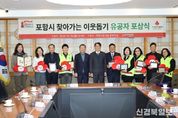 [ 신경북일보 ] 포항시는 지난 15일 시청 중회의실에서 2025년 경북사회복지공동모금회 포항시 찾아가는 이웃돕기 유공자 포상식을 개최했다. 이날 행사에는 장상길 포항시 부시장, 전우헌 경북사회복지공동모금회 회장, 임재선 사랑의열매 포항시 나눔봉사단장, 포항시 이웃돕기 유공자 8명이 참석해 자리를 함께했다. 이번 행사는 포항 지역에서 나눔과 봉사를 꾸준히 실천해 온 개인과 단체의 공로를 기리고, 경북사회복지공동모금회 모금액으로 추진되는 따뜻한 겨울나기 사업의 난방비 전달과 차량지원사업 차량 전달식을 함께 진행함으로써 지역사회 전반에 기부와 나눔 문화를 확산하기 위해 마련됐다. 포상식에서는 경북도지사·경북도의회 의장·경북경찰청장 표창과 경북사회복지공동모금회장 감사패, 착한가게 감사패 등이 수여됐다. 수상자로는 ▲경북도지사 표창 이소근(포항시 나눔봉사단) ▲경북도의장 표창 김우석(포항사랑요양병원장) ▲경북경찰청장 감사장 윤주애(포항시 시각장애인복지관 사무국장) ▲경북사회복지공동모금회장 감사패 전진만(㈜아이엠 대표) 외 3명이 포함됐다. 또한 10년 이상 정기기부를 실천해 온 김종섭 대표(