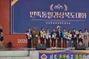 [ 신경북일보 ] 영주시는 지난 22일 풍기읍 남원천 일원 풍기인삼축제장 주무대에서 민족통일협의회 창설 44주년을 기념하는 ‘2025 민족통일경상북도대회’와 ‘제56회 한민족통일문화제전 시상식’을 성황리에 개최했다고 밝혔다. 경상북도와 영주시, 민족통일경상북도협의회, 민족통일영주시협의회가 공동으로 주최·주관한 이번 대회에는 도내 19개 시‧군 협의회 회원과 영주시민 등 600여 명이 참석했다. 참석자들은 민족통일운동 44년의 발자취를 돌아보며 한반도 평화와 번영을 향한 도민의 의지를 다졌다. 이번 행사는 ‘2025 경북영주풍기인삼축제’와 ‘영주장날 농특산물대축제’ 기간에 함께 열려, 축제를 찾은 시민과 관광객이 함께 참여하며 통일 공감대 확산과 지역 화합의 의미를 더했다. 본행사에 앞서 식전공연으로 평양예술단 특별공연이 펼쳐져 눈길을 끌었으며, 개회식과 국민의례, 회원신조 및 결의문 낭독, 대회사·격려사·환영사·축사 순으로 행사가 진행됐다. 이어 통일문화 확산과 지역사회 발전에 기여한 유공자 56명에게 표창이 수여됐다. 수상자는 △장관 표창 3명 △도지사 표창 12명 △민통장 증 6명 △중앙의장 표