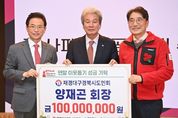 [ 신경북일보 ] 경상북도는 5일 양재곤 재경대구경북시도민회장이 경북도청을 방문해 연말 이웃돕기 성금 1억 원을 기탁했다. 이날 성금 전달식에는 이철우 경상북도지사, 양재곤 재경대구경북시도민회장, 허재대 특임부회장, 전우헌 경북사회복지공동모금회장 등이 참석했다. 경북 의성 출신인 양재곤 회장은 현재 주택건설업체인 다성건설(주) 대표로 있으며, 지난 2022년 12월부터 3년째 재경대구경북시도민회 회장을 맡아 대구·경북 지역발전과 고향사랑 실천을 위해 활발한 활동을 이어오고 있다. 특히, 지난 초대형 산불 시에도 피해 이재민 지원을 위해 재경대구경북시도민회 차원에서 성금을 모금하여 19억 2,601만 원의 거액을 경상북도에 전달했으며, 지난해 7월에는 저출생 극복을 위해 개인 명의로 성금 1억 원을 맡긴 바 있어 고향 사랑에 남다른 열정을 보인다. 양재곤 회장은 “연말을 맞아 어려움을 겪는 고향 이웃들에게 작은 힘이라도 보태고 싶어 성금을 마련했다”며, “도내 취약계층과 도움이 필요한 분들께 따뜻한 온기가 전해지길 바란다”고 말했다. 이철우 경상북도지사는 “늘 고향을 먼저 생각하시는 양재
