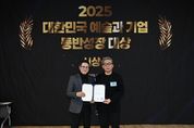 [ 신경북일보 ] 대구문화예술진흥원이 1월 15일 예술가의집(서울)에서 한국문화예술위원회와와 한국지역문화재단총연합회에서 공동 주최한 ‘2025 대한민국 예술과 기업 동반성장 대상’ 시상식에서 한국문화예술위원회 위원장상(우수재단상)을 수상했다. ‘예술과 기업 동반성장’ 사업은 한국문화예술위원회와 한국지역문화재단총연합회가 예술후원의 일상화와 지속가능한 예술 환경 조성을 위해 추진한 사업이다. 진흥원은 2025년 해당 사업을 통해 총 12개의 지역 기업으로부터 1억 2,500만 원을 기부받고, 예술위 지원금 등을 합해 총 3억 7,100만 원을 지역 예술단체에 후원하는 실적을 올렸다. 이와 함께 2025년 11월 26일 ‘메세나 콘서트’를 개최하는 등 지역에 문화예술 후원 가치를 확산하는 데 힘썼다. 이러한 공로를 인정받아 우수재단으로 선정된 진흥원은 시상식에서 한국문화예술위원회 위원장상을 수상했다. 이와 함께 지역의 우수기업 부분에 동일산업㈜, 우수예술단체 부분에 대구음악협회가 동반 수상하는 성과를 거뒀다. 특히 지역 중견기업 동일산업㈜은 1988년 (재)동일문화장학재단을 설립