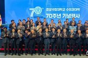 [ 신경북일보 ] 경상국립대학교 수의과대학은 설립 70주년을 맞이하여 70년 개척의 역사를 바탕으로 미래 100년을 향한 새로운 비상을 기념하기 위해, 10월 23일 오후 5시 칠암캠퍼스 100주년 기념관에서 ‘70년 개척의 자부심, 100년을 향한 새로운 비상’이라는 슬로건으로 ‘경상국립대학교 수의과대학 70주년 기념행사’를 개최했다. 기념행사에는 경상국립대학교 권진회 총장, 권순기 전 총장, 김상현 수의과대학장과 명예교수, 교직원, 학생, 최재영 수의과대학 총동문회장과 동문회 임원, 대한수의사회 허주형 회장, 이영락 부산수의사회 회장, 엄상권 경남수의사회 회장 등 300여 명이 참석했다. 기념행사는 개식, 국민의례, 내빈 소개, 대학 발전사 영상 시청, 환영사, 학사보고, 기념사, 축사, 공로패 수여, 감사패 수여, 발전기금 전달식, 학생 축하공연, 교가 제창, 기념 촬영 등의 순으로 진행됐다. 이날 행사에서 수의과대학 발전에 기여한 수의과대학 김종섭 명예교수, 최상용 명예교수, ㈜코미팜 문성철 대표, 대한수의사회 허주형 회장, 부산수의사회 이영락 회장에게 공로패를 수여했다. 또한 서울대학교 양