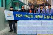 [ 신경북일보 ] 봉화로타리클럽(회장 원준석)은 11월 25일 (사)봉화군종합자원봉사센터(이사장 김병남)에 김장김치 50박스(150kg)을 전달했다. 이번 기탁은 겨울철을 앞두고 지역 내 취약계층과 소외이웃을 지원하기 위하여 마련됐다. 이날 김장 나누기 봉사에서는 봉화로타리클럽 회원 40여명이 참여한 가운데 재료 손질부터 절임, 양념 버무리기, 포장까지 직접 진행했으며, 준비된 김장김치는 거동불편 어르신 등 돌봄이 필요한 가구에 전달될 예정이다. 원준석 봉화로타리클럽 회장은 “추운 겨울을 대비해 도움이 필요한 분들에게 작은 힘이 되고자 회원들과 정성을 모았으며, 앞으로도 지역과 함께하는 나눔활동을 이어가겠다”고 밝혔다. 김병남 (사)봉화군종합자원봉사센터 이사장은 “정성을 담아 김장을 준비해주신 봉화로타리클럽 회원들게 감사드리며, 도움이 필요한 이웃들에게 전달해 드리겠다”고 전했다.